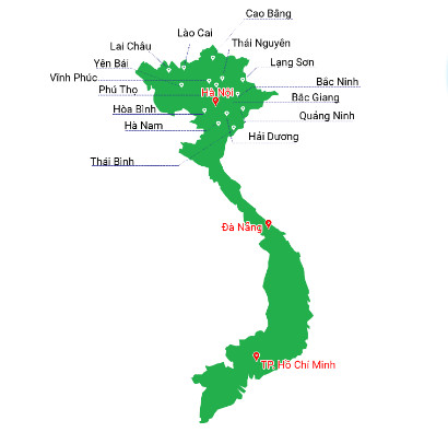 Chúng tôi hoạt động trên nhiều tỉnh thành ở Việt nam như Thái nguyên, Bắc Ninh, Bắc Giang, Hải Phòng, Vĩnh phúc, Hà nội...